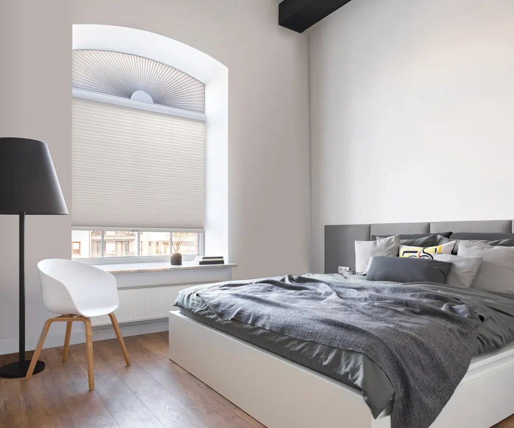• Specialty-shaped cellular shades conform to unique arch configurations